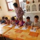 - Somlyainé Ditta, a védő néni mesét mondott a gyerekeknek a helyes táplálkozásról. A mesét feladatlap kitöltése, színezése követte, amely a mese tartalmával kapcsolatos feladatokat tartalmazott.