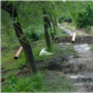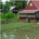 A rövid idő alatt leesett eső a mezőgazdasági területről félelmetes mennnyiségben és erővel a tanyák mögötti úton át zúdult le, a volt kisvasúti töltésnél lévő átfolyók ilyen mennyiségű vizet nem tudtak átengedni, a terület mélyen fekvő részén lévő horgászeszköztárolókat öntötte el az ár.