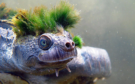 Az ausztráliai Mary-folyamban élő \"punkteknős\", mely becenevét a páncélján taréjszerűen növő zöld algák miatt kapta, felkerült a leginkább veszélyeztetett fajok listájára.