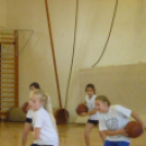 A 14 lelkes kisdiák próbálgatta a kosárlabda alapállás, a labdaátadások, kosárra dobások helyes végrehajtását.